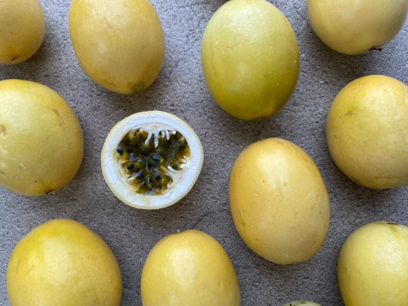 它有別於傳統百香果,果皮是黃中帶綠,果實也稍微大一些