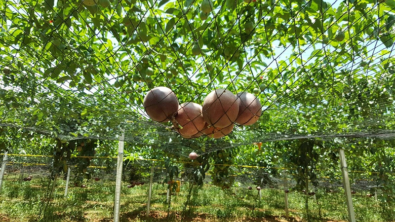 而百香果成熟掉落時,如果受到撞擊就容易造成內部果肉分離,果肉嘗起來就會比較酸!所以農民都會在果樹下放置吊網讓百香果熟成時可以掉落在網子上減少撞擊維持百香果的甜度。