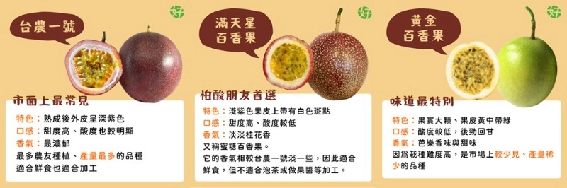 無論是經典的台農一號、甜蜜的滿天星,還是少見的黃金百香果,都各有迷人之處。